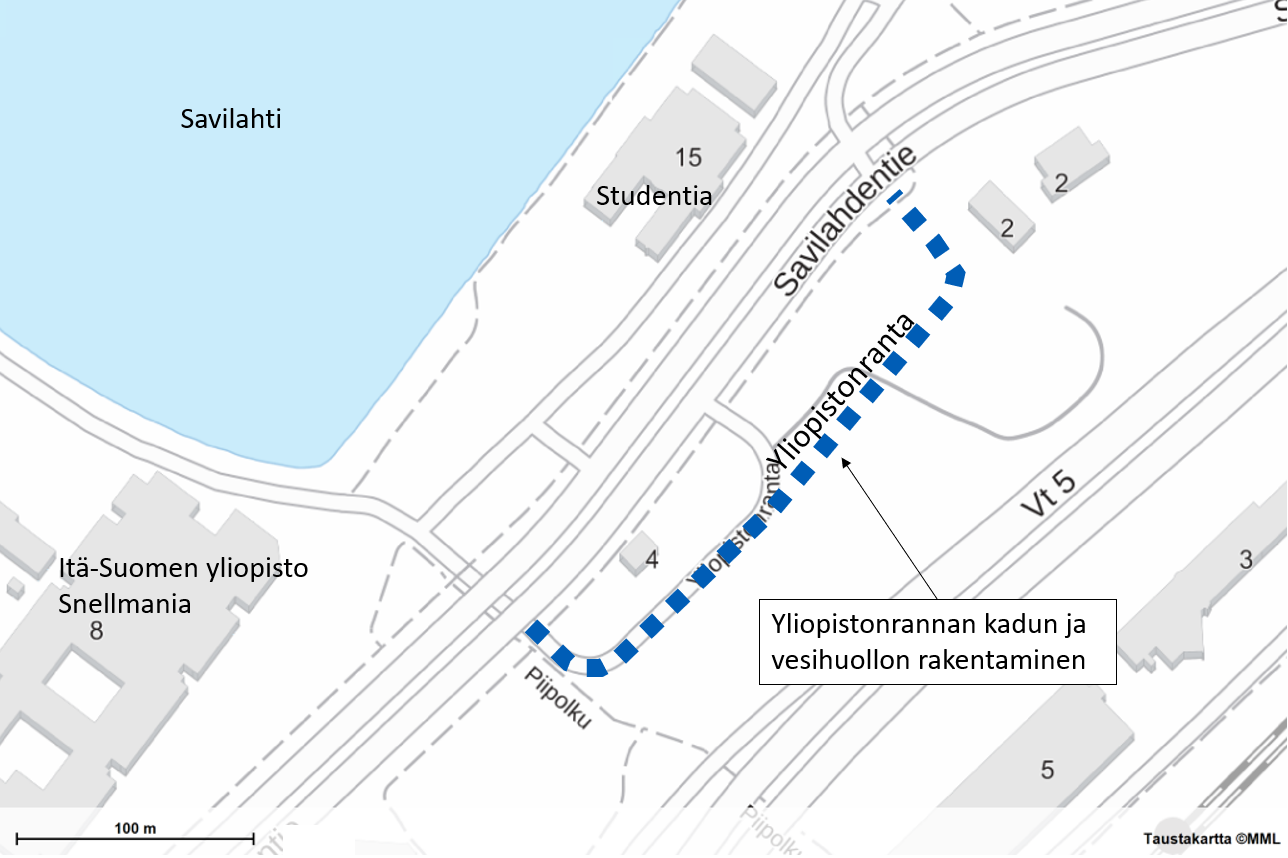 Yliopistonrannan kadun ja vesihuollon rakennustyöt käynnistyvät syyskuussa Savilahdessa. Työ sisältää yleisille alueille sijoittuvat hulevesiviemärit tonttiliittymineen, paalulaatan rakentamisen sekä Kuopion Veden vesihuoltoverkoston tonttiliittymineen.