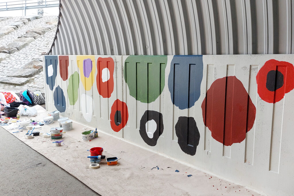 The community artwork aims to highlight the joy of collaboration and teamwork and to serve as a reminder to future students, scientists and citizens of what can be achieved through cooperation. Celebrating community and interdisciplinarity, the colours of the community artwork reflect the colours of the Student Union of the University of Eastern Finland (ISYY). The art project was a success, allowing students in the Savilahti area to leave their mark on the environment near the campus.
