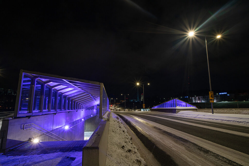 Sijainti: Yliopistonrannan ja valtatien välinen Valon aaltojen silta ja alikulkukäytävä / Savilahdentie, Savilahti