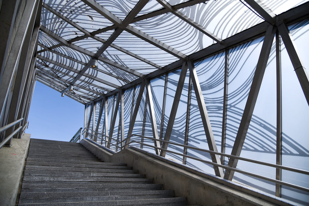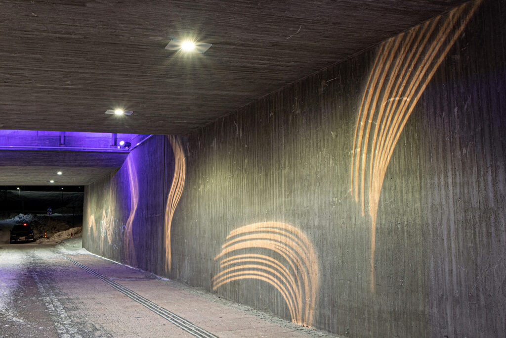 Silta-alueeseen suunnitellussa kuva-aiheessa toistuvat orgaanisesti etenevät aaltomaiset viivamuodot. Kuva-aiheen viivastoissa taiteilija on pohtinut valoon miellettävän siirtymisen ja toiston käsitteitä, toistuvien aaltojen liikettä tilassa.